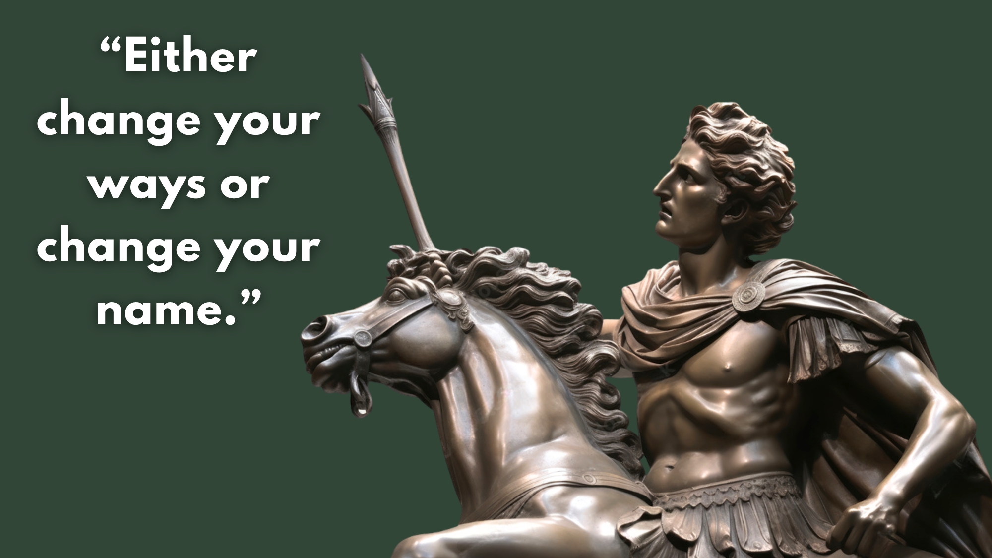 Alexander the Great had a deserter brought before him. The sentence for any deserter in battle was immediate death. Before the man was executed, Alexander asked him his name. The man replied, “My name is Alexander.” Alexander the Great then said, “You will be pardoned under one condition—either change your ways or change your name.”