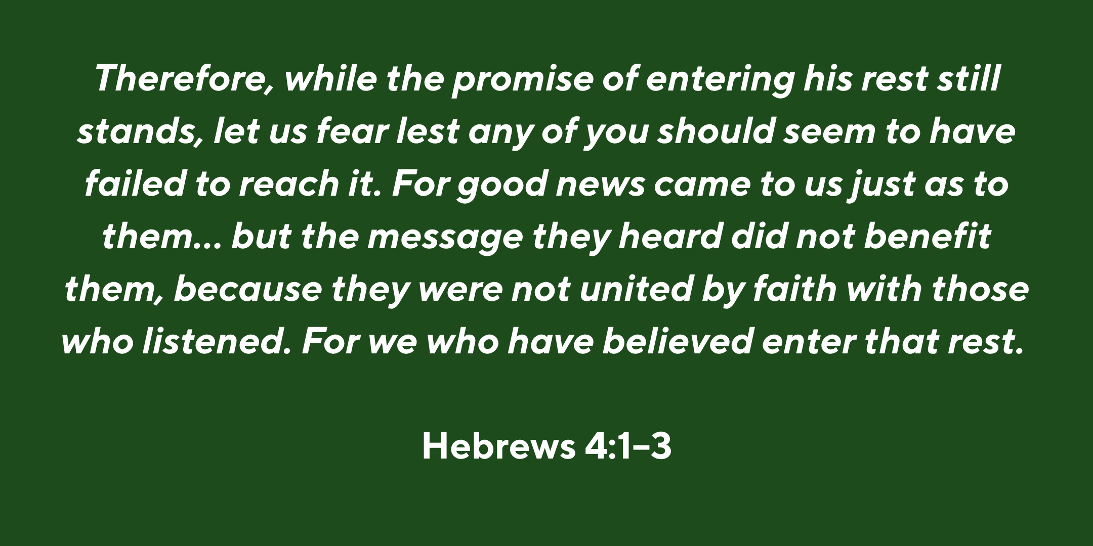 What “rest” is the author of Hebrews referring to? It is the once-for-all peace settlement between fallen men and women and their Most Holy God — a feat made possible only through the work of Christ on the Cross.